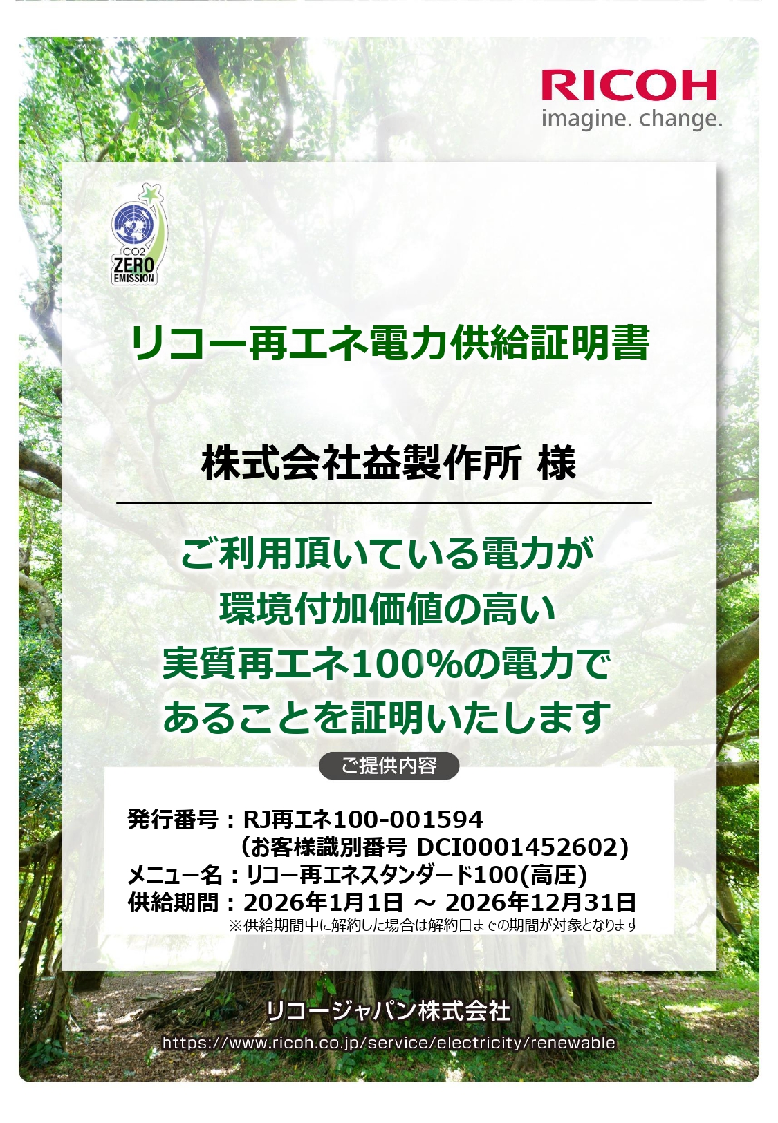 ■リコー再エネ電力供給証明書2026年1月1日~2026年12月31日